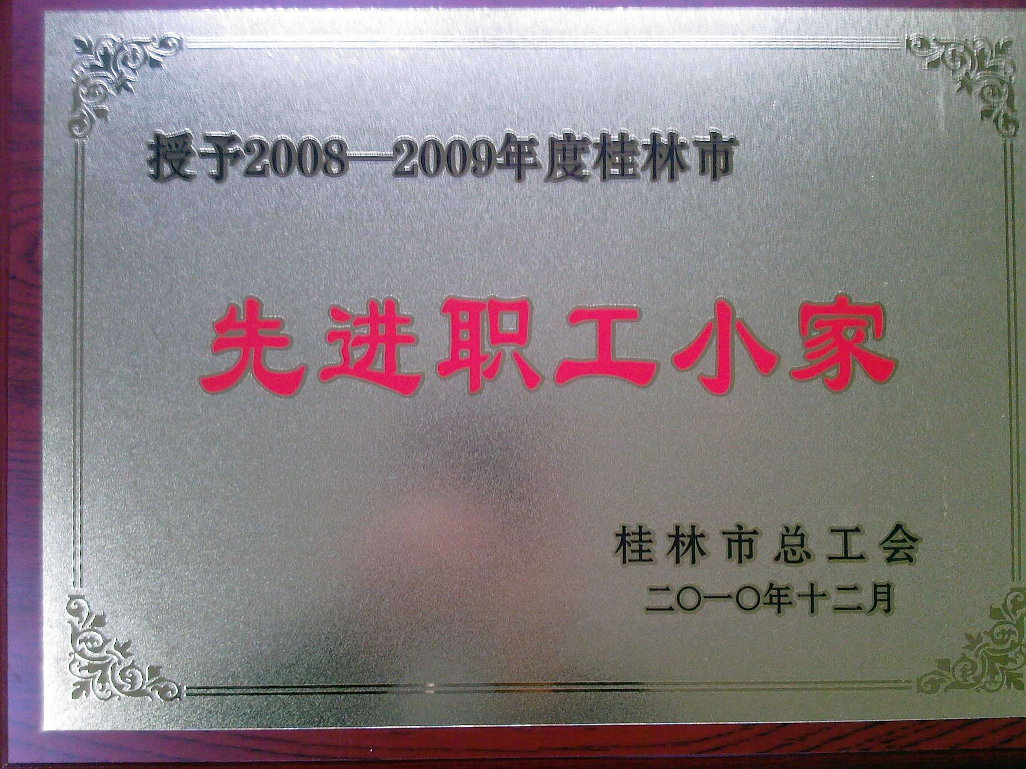 为了进一步增强做好新时期工会工作的责任感和使命感,切实发挥好组织职工、引导职工、服务职工和维护职工合法权益的重要作用,广泛深入地开展建设职工之家活动,近日,广西壮族自治区总工会和桂林市总工会对各级优秀工会组织和先进个人进行了表彰。在此活动中,我校工会荣获自治区“百佳模范职工之家”称号,工商管理系分工会荣获桂林市“先进职工小家”称号。