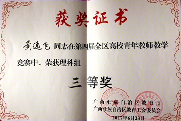 6月23日,由自治区教育厅和自治区教育工会联合举办的第四届全区高校青年教师教学竞赛在广西师范大学落下帷幕。我校选派的3名教师在比赛中喜获佳绩,其中,汽车与交通工程学院莫德赟老师荣获工科组一等奖、航空旅游学院吴建冰老师荣获文科组二等奖、理学部黄逸飞老师荣获理科组三等奖。