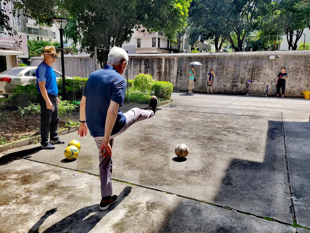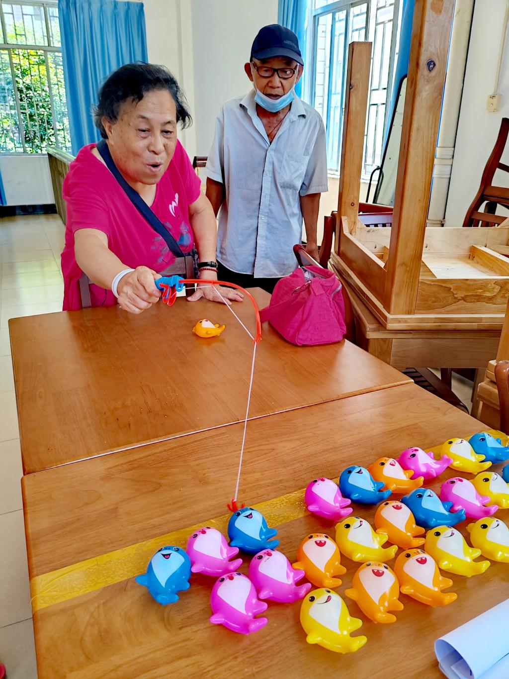 本次运动会分别设置了足球定点射门、飞镖、套圈、投乒乓球、地滚球、转盘、小猫钓鱼等7项适合老年人特点的比赛项目。