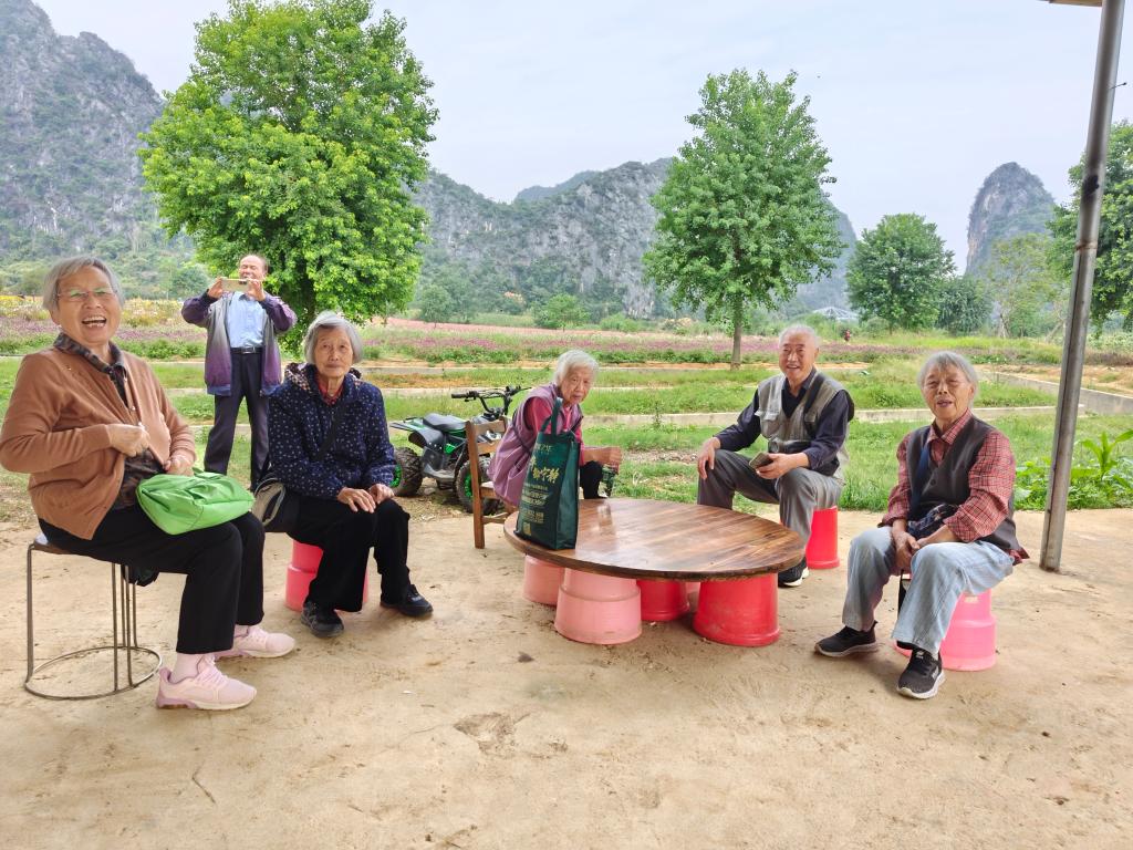 老同志们赏花观景、开心畅游。