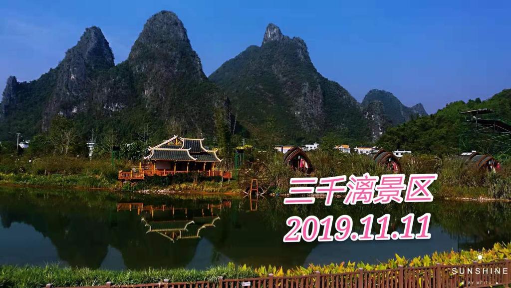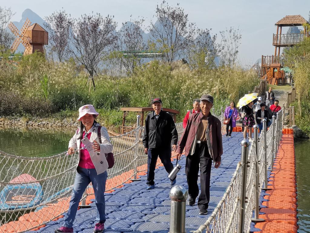 三千漓以“渔樵耕读”为文化主题,整体规划时光兴坪、田园牧歌、梦梓村舍、凊歌樵苏、闲云空谷五大功能分区,在这个与20元人民币的背景实景相邻,周边拥有九马画山、黄布倒影、总统渔村等大环境中打造的“三千漓”山水人文度假区里,老同志欣一边赏着自然景观,一边驻足徐悲鸿艺术馆、曹邺诗文展等人文景点,他们成帮结队、追忆往昔,时而开心叙旧,时而拍照留念……