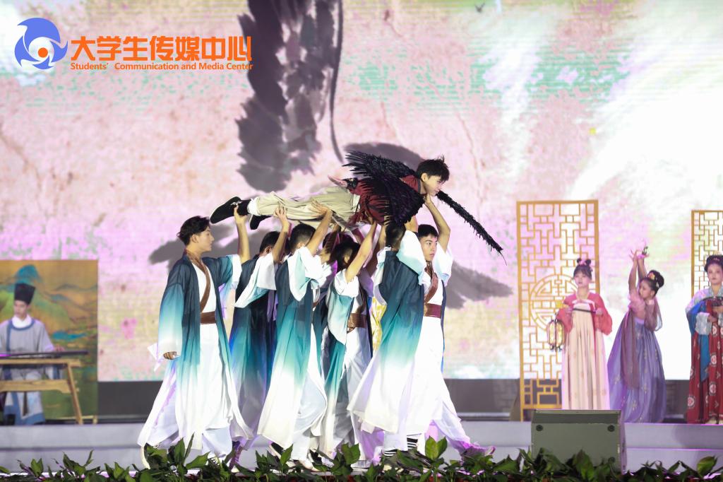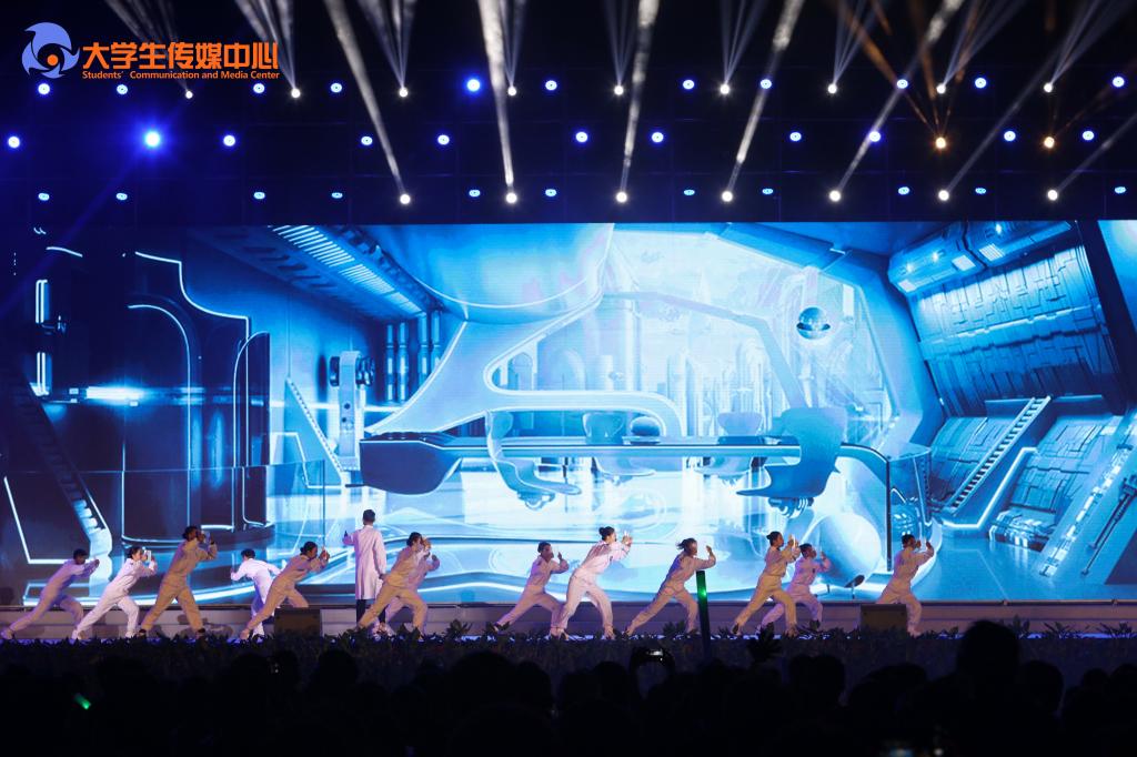 第三篇章“飞天•寻梦”,通过原创音乐剧《一只梦想去太空的萤火虫》展现了我校学子崇尚科学、探索未知、敢于创新的励志故事。动感酷炫的光电舞《迈向未来》科技感十足,令师生频频叫好。舞蹈《奔·越》表现了航天工匠历经艰苦、拼搏奉献、为实现中华民族伟大复兴的中国梦凝聚强大力量的崇高精神,在场观众无不动容。弦音振动,鼓乐吹笙,最后全体大合唱《我和我的祖国》呼唤师生不忘初心、砥砺前行,爱国荣校,共创辉煌。