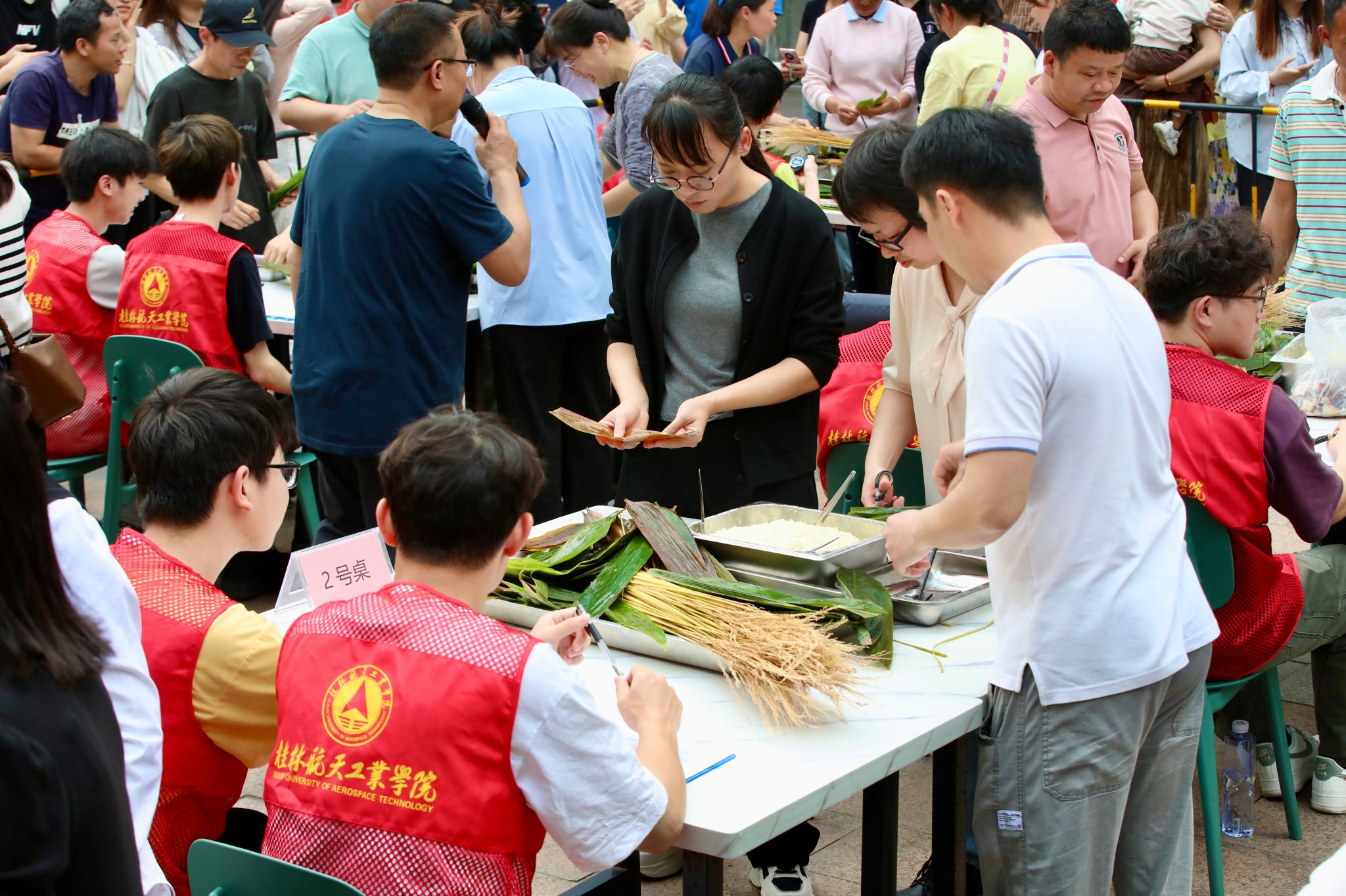 为迎接“广西三月三”,3月27日,以“粽叶飘香传师情,油茶溢彩兴乡村”为主题的特别活动在桂航校园里火热开展。校党委书记韩峻峰、校党委副书记孙山林、副校长葛莉参加活动,与师生们共同体验中华民族传统文化。