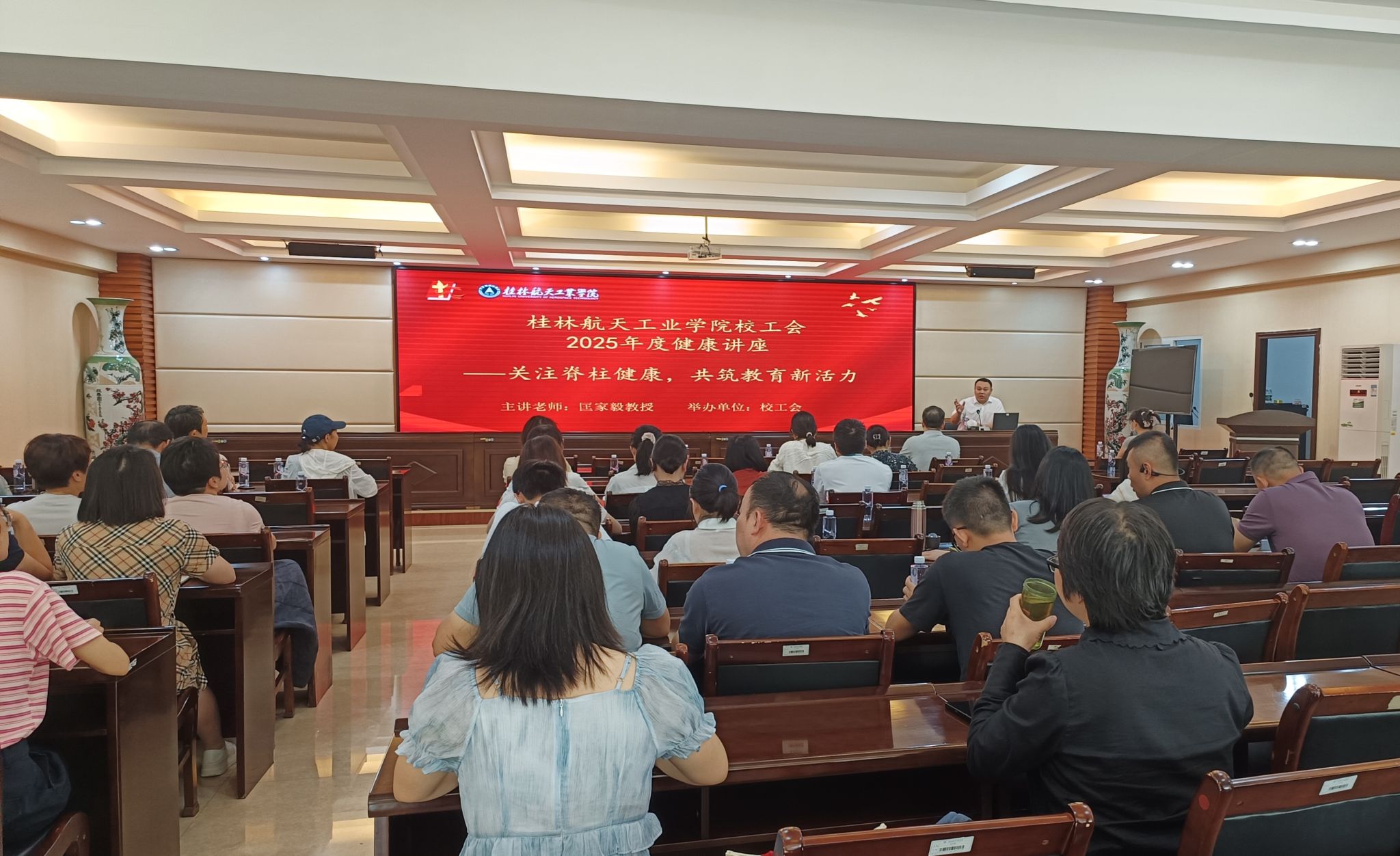 为提升教职工对职业性肌肉骨骼疾患的认识,增强日常养护意识,6月12日下午,校工会在飞天楼520开展《关注脊柱健康,共筑教育新活力--教育行业职业性肌肉骨骼疾患》健康讲座。本次讲座邀请到桂林市中医医院匡家毅教授担任主讲嘉宾,校工会领导主持,来自学校22个分工会60余名教师参加此次讲座。